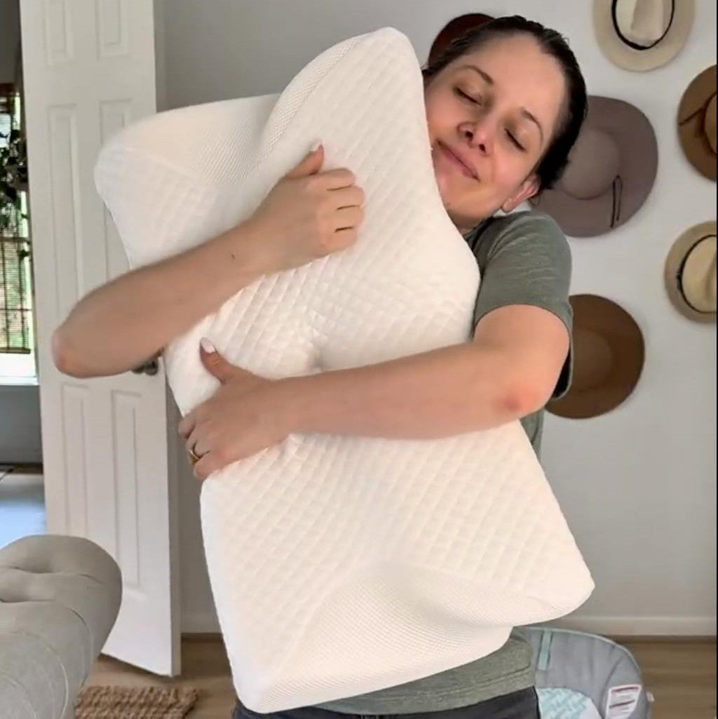 Our 2-in-1 Ergonomic Cervical Pillow is shaped to support your neck, head, and shoulders—no matter how you sleep.